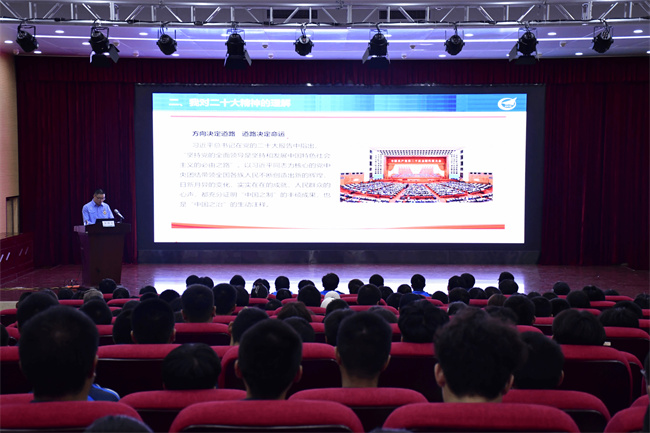 中新河南網(wǎng)10月25日電(阿依古麗·艾力江) “文化浸潤心靈,啟迪智慧人生”。為弘揚(yáng)勞模精神、勞動(dòng)精神、工匠精神,使在校師生在了解、學(xué)習(xí)勞模的先進(jìn)事跡中,陶冶情操、觸動(dòng)心靈、崇德向上,10月18日下午,鄭州電力高等?茖W(xué)校在學(xué)生中心東階梯教室,舉辦了明德講堂之“凝心鑄魂跟黨走 團(tuán)結(jié)奮進(jìn)新征程”勞模工匠進(jìn)校園主題講座。