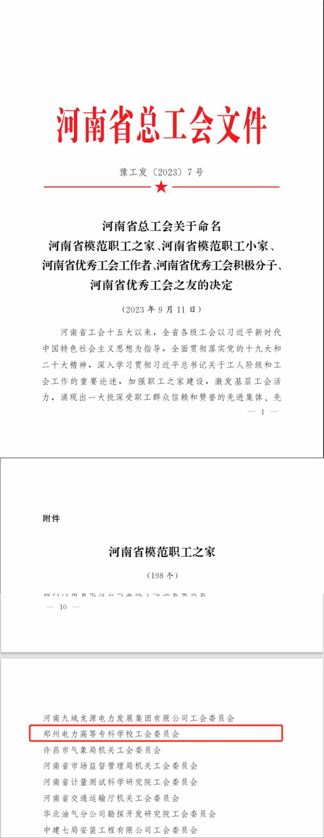 鄭州電力高等?茖W(xué)校工會(huì)被授予“河南省模范職工之家”榮譽(yù)稱號(hào)