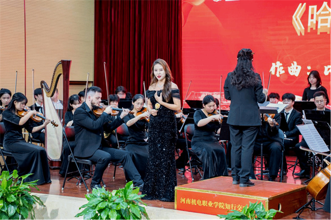 河南機(jī)電職業(yè)學(xué)院水佳楠老師,深情演唱法國(guó)歌劇《卡門》選段《哈巴涅拉舞曲》,動(dòng)人心弦的歌聲令在場(chǎng)師生無不沉醉其中,得到了現(xiàn)場(chǎng)師生的一致好評(píng)。