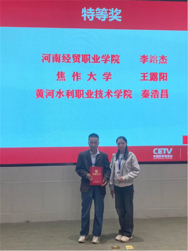 中新河南網(wǎng)11月1日電 “中國教育電視臺·外研社杯”職場英語挑戰(zhàn)賽演講大賽省賽于2023年10月27日——29日在濮陽職業(yè)技術(shù)學(xué)院如期舉行。本次大賽共有來自全省32所不同院校的63名選手參賽。焦作大學(xué)基礎(chǔ)教學(xué)部教師付瑩指導(dǎo)的機(jī)電學(xué)院22級智能制造裝備技術(shù)班學(xué)生王露陽在大賽中嶄露頭角,一路晉級,最終榮獲省級特等獎(jiǎng),并入圍國賽。
