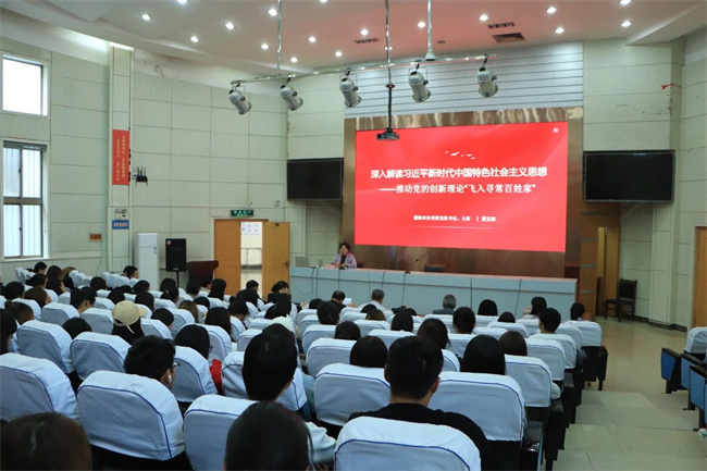 中新河南網(wǎng)11月3日 為深入開展學(xué)習(xí)貫徹習(xí)近平新時(shí)代中國(guó)特色社會(huì)主義思想主題教育,持續(xù)推動(dòng)黨的創(chuàng)新理論往深里走、往心里走、往實(shí)里走,根據(jù)市委統(tǒng)一安排,10月30日下午,濮陽(yáng)市政協(xié)常委、社科聯(lián)黨組書記、主席董玉清應(yīng)邀到濮陽(yáng)職業(yè)技術(shù)學(xué)院開展題為《深入解讀習(xí)近平新時(shí)代中國(guó)特色社會(huì)主義思想——推動(dòng)黨的創(chuàng)新理論“飛入尋常百姓家”》的專題宣講。宣講會(huì)在行政樓一樓報(bào)告廳舉行,黨委副書記宋富勤主持。2000余名師生在線上線下同時(shí)聆聽了專題宣講。