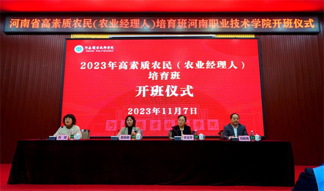 中新河南網(wǎng)11月10日電(萬弢) 11月7日上午,河南職業(yè)技術(shù)學(xué)院2023年高素質(zhì)農(nóng)民(農(nóng)業(yè)經(jīng)理人)第二期培育班在省農(nóng)科院現(xiàn)代農(nóng)業(yè)研究開發(fā)基地開班。校長(zhǎng)夏新顏、中原出版?zhèn)髅郊瘓F(tuán)副總經(jīng)理李文平出席開班儀式。中原農(nóng)民出版社和學(xué)校繼續(xù)教育與培訓(xùn)中心相關(guān)負(fù)責(zé)人,省內(nèi)各市、縣農(nóng)業(yè)經(jīng)營(yíng)主體負(fù)責(zé)人、創(chuàng)業(yè)致富帶頭人近100名學(xué)員參加開班儀式。儀式由副校長(zhǎng)肖瓏主持。