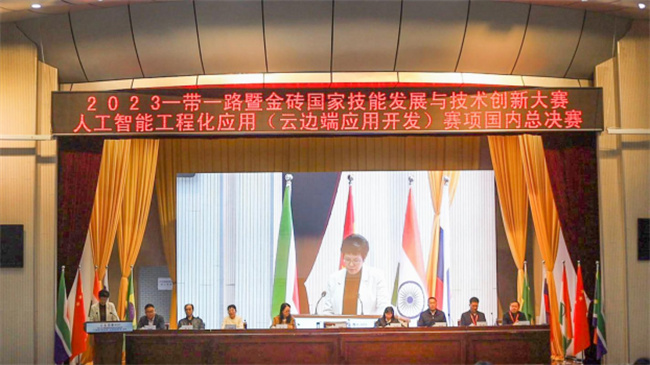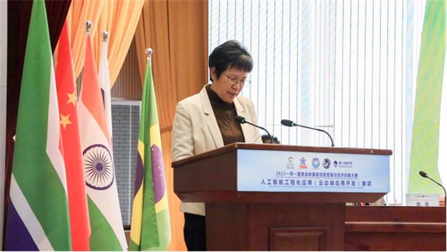 鄧立在致辭中指出,本次人工智能工程化應(yīng)用賽項(xiàng),聚焦人工智能和傳統(tǒng)產(chǎn)業(yè)的融合應(yīng)用,旨在幫助傳統(tǒng)產(chǎn)業(yè)實(shí)現(xiàn)轉(zhuǎn)型升級和價(jià)值再造,為人工智能產(chǎn)業(yè)發(fā)展提供豐富的人才支持。大賽通過融入企業(yè)先進(jìn)的技術(shù)以及崗位需求,實(shí)現(xiàn)對學(xué)生專業(yè)技能的綜合檢驗(yàn),希望能夠選拔出一批人工智能應(yīng)用技術(shù)領(lǐng)域高素質(zhì)技術(shù)技能人才,推動金磚國家職業(yè)技能發(fā)展、工程能力培養(yǎng)和智能技術(shù)創(chuàng)新。