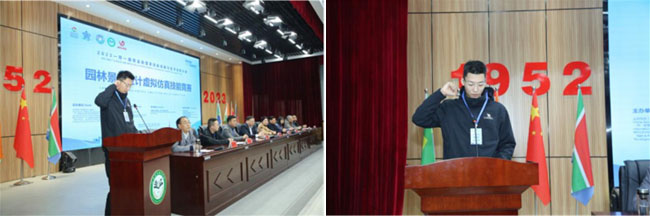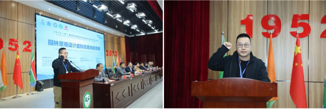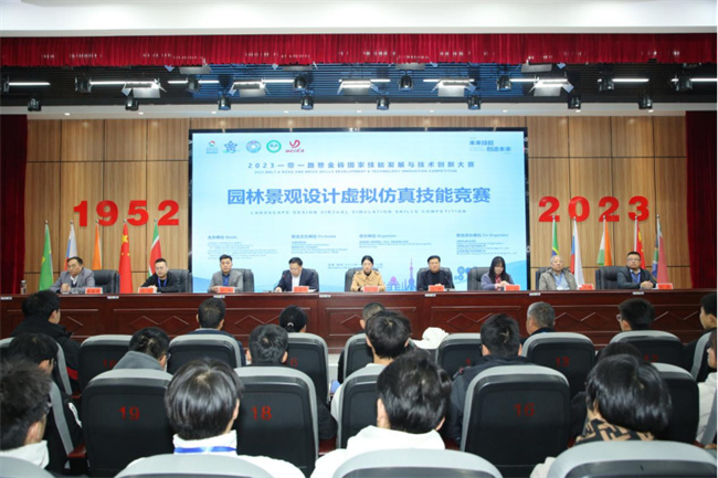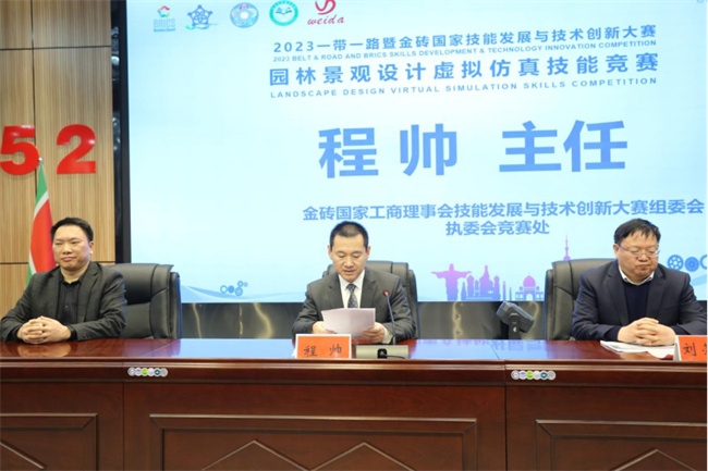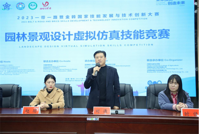 黨委書記劉源宣布“一帶一路”暨金磚國(guó)家技能發(fā)展與技術(shù)創(chuàng)新大賽園林景觀設(shè)計(jì)虛擬仿真技能賽項(xiàng)開幕。