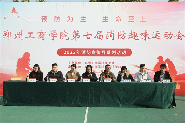 中新河南網(wǎng)11月16日電(程琳) 為積極響應(yīng)2023年第32個“全國消防宣傳日”,認真貫徹落實上級安全教育工作的指示精神,進一步提高師生消防安全素質(zhì)和抵御災(zāi)害能力,讓“119”更加深入人心,鄭州工商學(xué)院于11月14日舉辦2023年消防宣傳月系列活動之第七屆消防趣味運動會,常務(wù)副校長王提,保衛(wèi)處,各二級學(xué)院主要負責人,輔導(dǎo)員代表及參賽代表隊伍參加活動。