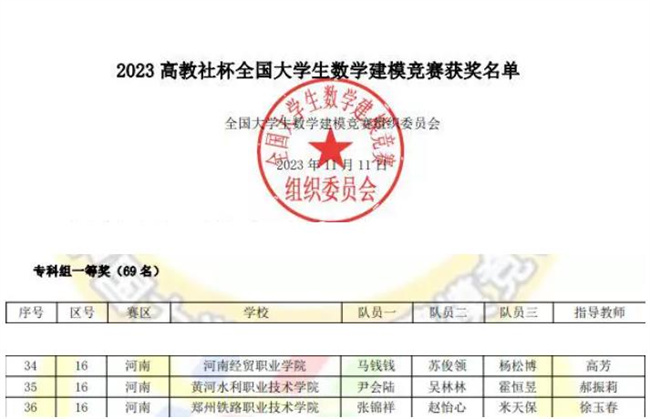 中新河南網(wǎng)11月17日電 近日,“高教社杯”全國(guó)大學(xué)生數(shù)學(xué)建模競(jìng)賽成績(jī)發(fā)布,由黃河水利職業(yè)技術(shù)學(xué)院基礎(chǔ)部郝振莉老師指導(dǎo)的2021級(jí)水工建筑專(zhuān)業(yè)尹會(huì)陸、水文地質(zhì)專(zhuān)業(yè)吳林林和水利施工專(zhuān)業(yè)霍恒昱組成的參賽隊(duì)伍,獲得全國(guó)一等獎(jiǎng)。