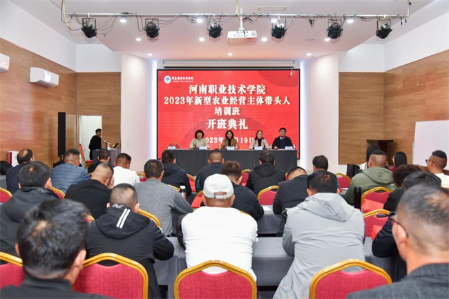 中新河南網(wǎng)11月24日電(蔡晶晶) 11月19日下午,河南職業(yè)技術(shù)學(xué)院2023年新型農(nóng)業(yè)經(jīng)營主體帶頭人培訓(xùn)班在新鄭市好想你紅棗小鎮(zhèn)開班。校長夏新顏、副校長肖瓏出席開班儀式。長葛市農(nóng)業(yè)技術(shù)服務(wù)中心黨支部書記張改霞、學(xué)校繼續(xù)教育與培訓(xùn)中心負(fù)責(zé)人及來自長葛市41名新型農(nóng)業(yè)經(jīng)營主體帶頭人參加開班儀式。肖瓏主持開班儀式。