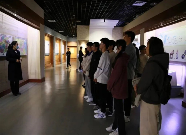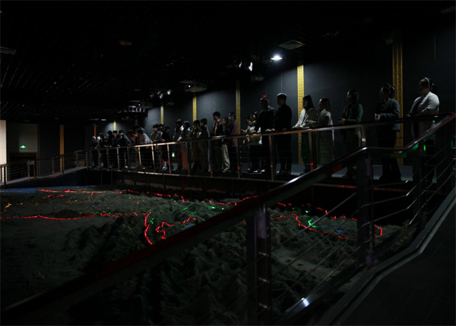 場館里,在巨大的黃河流域沙盤模型前,“幾”字形的黃河貫穿中原大地的景象瞬間映入大家的眼簾,它如同騰飛的巨龍,展示著蜿蜒、雄偉和壯觀;如同時光機,記載著華夏五千年的文明和奮斗史詩;如同母親,滋養(yǎng)著中華大地、哺育著中華兒女。大家通過觀看歷史文獻、文物標本和有關圖文,依次參觀了流域地理、民族搖籃、千秋治河、治河新篇、和諧之路五大展區(qū),多角度、全方位地了解黃河流域的自然概況、文化內涵和水資源開發(fā)利用等,強烈感受著我們黨治理黃河的豐功偉績,仔細品味和體會中華民族在治理黃河過程中展現(xiàn)的自強不息、頑強拼搏的奮斗精神。