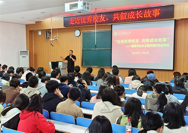 典型引領(lǐng)樹(shù)立標(biāo)桿,上好新生“入學(xué)第一課”。扎實(shí)開(kāi)展新生入學(xué)教育,積極邀請(qǐng)中建五局河南分公司黨委書(shū)記、董事長(zhǎng)周國(guó)森等10名優(yōu)秀校友拍攝“新生寄語(yǔ)”,精心遴選2023年全國(guó)五一勞動(dòng)獎(jiǎng)?wù)芦@得者葉雨山等18名校友制作“優(yōu)秀校友風(fēng)采”迎新展板,邀請(qǐng)2023年國(guó)家自然科學(xué)基金青年項(xiàng)目獲得者梁維云為新生作專題輔導(dǎo)報(bào)告,幫助新生樹(shù)立專業(yè)意識(shí),深化專業(yè)認(rèn)知,明晰目標(biāo)定位。
