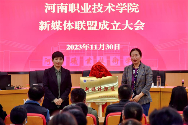 會議宣布了《河南職業(yè)技術(shù)學(xué)院新媒體聯(lián)盟理事長單位、理事單位名單》;表決通過了《河南職業(yè)技術(shù)學(xué)院新媒體聯(lián)盟章程(審議稿)》;田華、楊曉謎為學(xué)校新媒體聯(lián)盟揭牌并分別為聯(lián)盟成員單位授牌;校團(tuán)委和智慧健康學(xué)院新媒體指導(dǎo)老師分別作經(jīng)驗(yàn)交流發(fā)言。