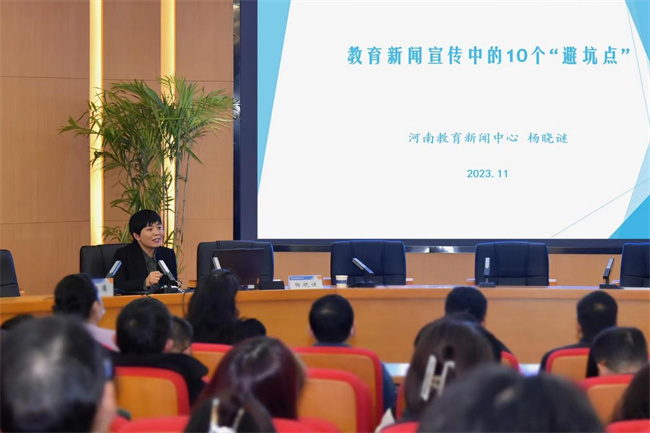 隨后,楊曉謎作了題為《教育新聞宣傳中的10個(gè)“避坑點(diǎn)”》的專題講座,她結(jié)合多年新聞宣傳工作經(jīng)驗(yàn),分別從新聞中的規(guī)范性表述、新聞報(bào)道注意事項(xiàng)、新聞細(xì)節(jié)校對和新聞圖片審核等十個(gè)方面,對日常新聞宣傳工作中應(yīng)注意的問題進(jìn)行了詳細(xì)講解。報(bào)告既有理論高度,又有思想維度,更有實(shí)踐深度,也有很強(qiáng)的現(xiàn)實(shí)針對性和指導(dǎo)性,為學(xué)校更好地做好新時(shí)期宣傳思想工作,提供了根本遵循、指明了科學(xué)路徑、提供了行動指南。