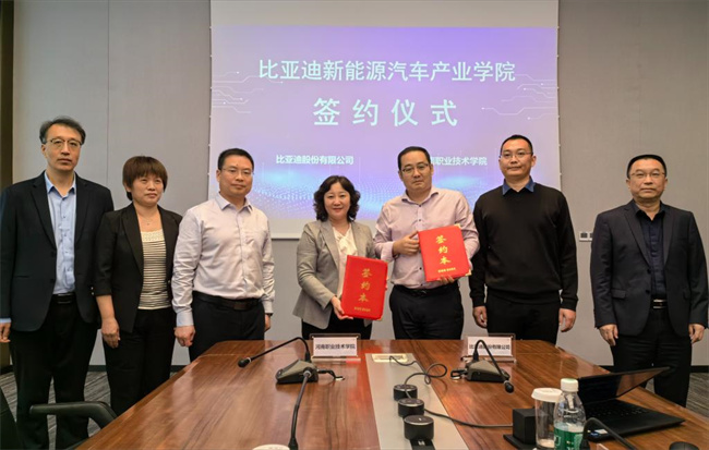 中新河南網(wǎng)12月4日電(趙鶴偉) 11月30日上午,河南職業(yè)技術(shù)學(xué)院校長(zhǎng)夏新顏帶領(lǐng)教務(wù)處、智能制造學(xué)院、汽車與交通學(xué)院負(fù)責(zé)人等一行5人,在比亞迪深圳全球總部與比亞迪人力資源處校企合作總監(jiān)劉俊鵬、校企合作經(jīng)理?xiàng)铍p喜及其團(tuán)隊(duì)就校企合作等事宜進(jìn)行深入交流,并簽訂了產(chǎn)業(yè)學(xué)院共建協(xié)議。