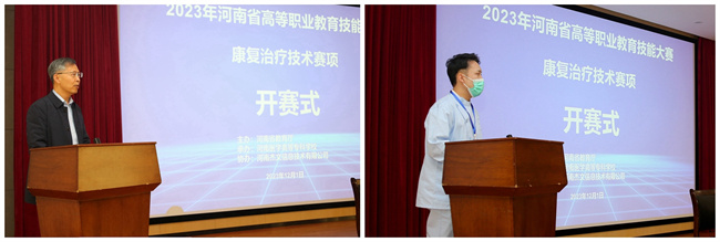 張進(jìn)忠在致辭中首先對(duì)參加競(jìng)賽的各參賽隊(duì)表示歡迎,并簡(jiǎn)要介紹了學(xué)校建設(shè)發(fā)展情況。他講到,河南醫(yī)學(xué)高等專(zhuān)科學(xué)校有71年辦學(xué)歷史,71年的建設(shè)發(fā)展,形成了辦學(xué)特色鮮明,專(zhuān)業(yè)布局合理,教學(xué)條件完善的高水平學(xué)校。學(xué)校是全國(guó)綠化先進(jìn)單位,國(guó)家自然科學(xué)基金依托單位,省級(jí)文明校園(標(biāo)兵)單位,是“十四五”時(shí)期教育強(qiáng)國(guó)推進(jìn)工程職業(yè)院校,中國(guó)人民解放軍護(hù)理軍士定點(diǎn)培養(yǎng)院校。近年來(lái)學(xué)校堅(jiān)持校企合作、產(chǎn)教融合,不斷深化教育教學(xué)改革,在國(guó)家和省級(jí)技能競(jìng)賽、教材建設(shè)、教師團(tuán)隊(duì)建設(shè)中成績(jī)突出。他指出,本次大賽對(duì)接行業(yè)標(biāo)準(zhǔn)、先進(jìn)技術(shù)和診療過(guò)程,對(duì)促進(jìn)醫(yī)教協(xié)同、崗課賽證綜合育人具有重要意義。學(xué)校作為承辦校,堅(jiān)持“精彩、公平、專(zhuān)業(yè)、開(kāi)放”的辦賽理念,全力以赴、盡心盡責(zé),高水平高質(zhì)量做好賽事服務(wù)保障工作,確保大賽順利舉行。