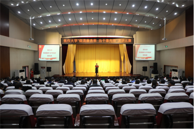 “做清廉表率、當(dāng)干事先鋒”演講比賽是焦作大學(xué)2023年黨風(fēng)廉政教育月活動(dòng)的主要內(nèi)容之一,旨在扎實(shí)推進(jìn)“清廉校園”建設(shè)行動(dòng)“崗位廉政風(fēng)險(xiǎn)防控年”創(chuàng)建活動(dòng),教育引導(dǎo)廣大黨員干部擔(dān)當(dāng)作為、奮發(fā)進(jìn)取、遵紀(jì)守法、廉潔奉公,營造人人尚廉敬廉護(hù)廉守廉校園文化氛圍。演講比賽在各黨總支和直屬黨支部組織初賽的基礎(chǔ)上,有16位選手脫穎而出入圍演講比賽決賽。比賽現(xiàn)場(chǎng),選手們個(gè)個(gè)精神煥發(fā)、激情高昂,有的講述大國與小家之間的清廉故事;有的講述廉潔家庭故事;有的講述廉潔從教、廉潔從業(yè)故事。16位選手從不同視域、不同層面挖掘廉潔元素、傳承廉潔文化,弘揚(yáng)清正廉潔、擔(dān)當(dāng)作為之時(shí)代新風(fēng)。
