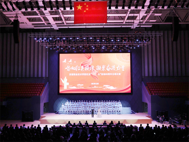“王屋山下,黃河北岸,我們歡聚在知識的圣殿……”合唱比賽在濟(jì)源職業(yè)技術(shù)學(xué)院校歌聲中拉開了帷幕。本次比賽以“唱響紅色旋律 凝聚奮進(jìn)力量”為主題,除了演唱校歌,11支參賽隊伍還演唱了《我和我的祖國》《祖國不會忘記》等歌曲,共同追憶崢嶸歲月,唱響青春贊歌。