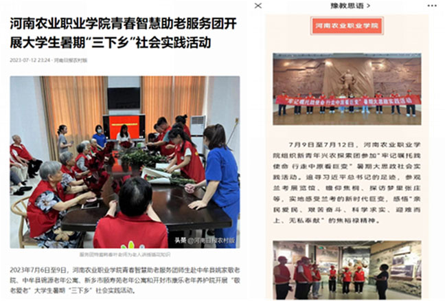 河南日報、教育廳公眾號報道農(nóng)業(yè)工程學(xué)院團隊活動