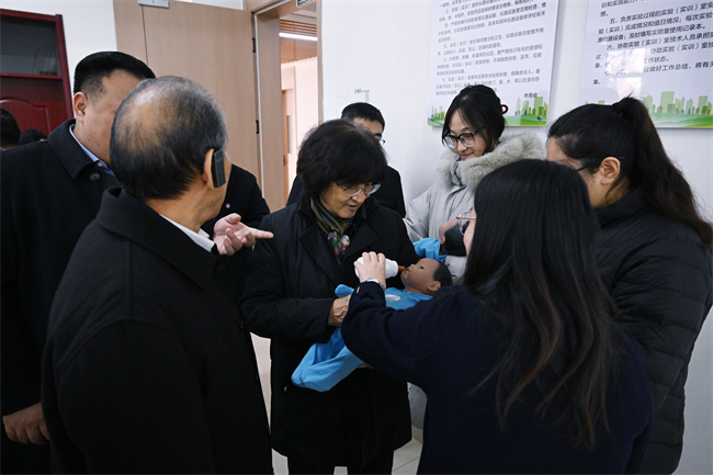 揭牌儀式后,高新亭同志一行先后到學校黨建與思政教育基地、圖書館、學前教育國家級實驗教學示范中心、生命科學館實地調(diào)研,現(xiàn)場指導學校黨建思政、教育教學等工作。