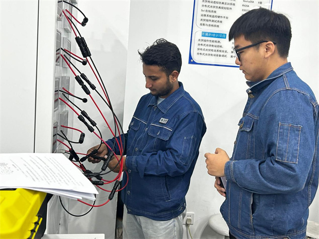 2023年12月25日,鄭州電力高等專科學(xué)校境外辦學(xué)機(jī)構(gòu)尼泊爾“中尼電力絲路學(xué)院”2021級電力系統(tǒng)自動(dòng)化技術(shù)專業(yè)7名學(xué)生和3名教師抵達(dá)學(xué)校開展為期10天的專業(yè)技能實(shí)習(xí)培訓(xùn)。電力工程學(xué)院為此次培訓(xùn)做出精心組織和安排,根據(jù)課程計(jì)劃對“中尼電力絲路學(xué)院”師生開展了“典型客戶配電實(shí)訓(xùn)、光伏電站運(yùn)維實(shí)訓(xùn)、智能變電站運(yùn)維實(shí)訓(xùn)、輸配電線路運(yùn)維實(shí)訓(xùn)”四門核心課程的實(shí)習(xí)培訓(xùn)。通過此次實(shí)習(xí)培訓(xùn)學(xué)生對已學(xué)專業(yè)課程涉及的技能進(jìn)行了實(shí)踐,實(shí)踐使學(xué)生身臨其境,置身于工作環(huán)境,將所學(xué)理論知識(shí)運(yùn)用到工作崗位中,為進(jìn)一步提高職業(yè)崗位能力奠定了基礎(chǔ)。