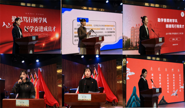 各院系以校風學風建設工作為根本,以思想價值引領(lǐng)為基礎,以特色創(chuàng)新活動為依托,以學工隊伍能力建設為重點,結(jié)合本院系專業(yè)特色和人才培養(yǎng)定位和實際,總結(jié)了學風建設以來的重點、亮點及特色工作,同時以詳實的數(shù)據(jù)、豐富的圖片和典型的工作實例對學風工作成效進行展示,贏得了現(xiàn)場評委老師的陣陣掌聲。由教務處、學生處、團委、各院(系)黨政主要負責同志共計9人組成的評委組,根據(jù)評選工作要求,對照評審細節(jié),本著公平、公開、公正原則,針對各參評院系的成果匯報和匯總材料進行評定,最終評選出會計學院、信息技術(shù)系、商貿(mào)系為2023年學風建設月先進單位并為先進單位頒發(fā)了證書。此次評選活動的評分、計票等環(huán)節(jié)由紀委工作人員全程監(jiān)督,確保評選公正有效。