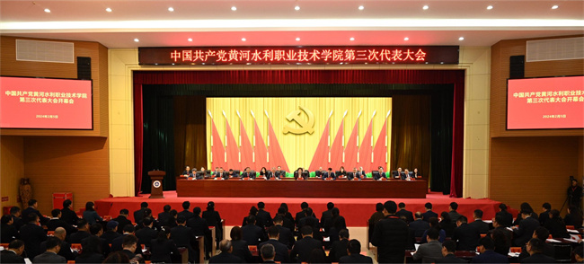 會場氣氛莊嚴熱烈。主席臺上方懸掛著“中國共產(chǎn)黨黃河水利職業(yè)技術學院第三次代表大會”會標,帷幕正中懸掛的黨徽熠熠生輝,十面鮮艷的紅旗分列兩側(cè)。