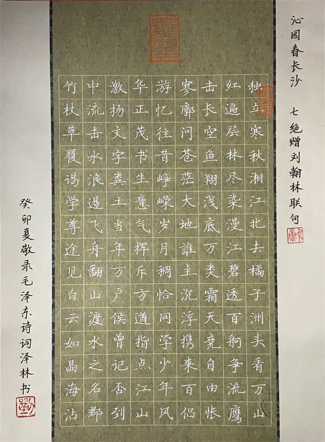 藝術(shù)設(shè)計(jì)學(xué)院學(xué)生劉澤林的書(shū)寫(xiě)作品《沁園春·長(zhǎng)沙》