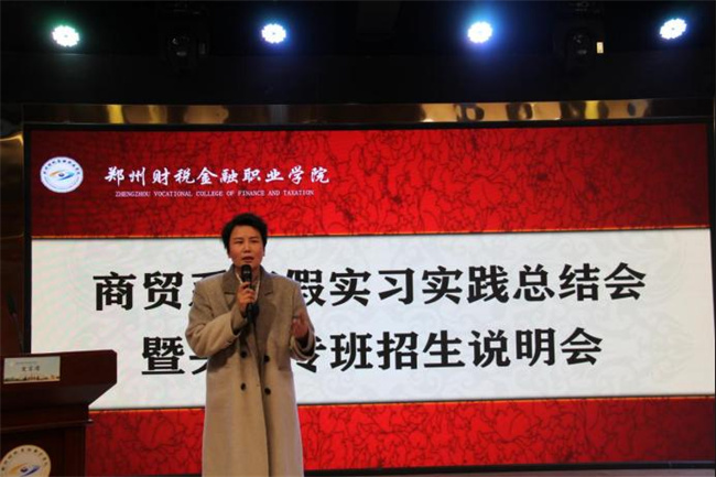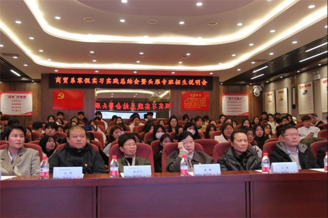 商貿(mào)系主任南志光致辭,他肯定了同學(xué)們在寒假期間實(shí)習(xí)中的優(yōu)異表現(xiàn)。他表示,“聚沙成塔,集腋成裘,實(shí)習(xí)的結(jié)果并非一蹴而就,而在于點(diǎn)滴的積累”,實(shí)習(xí)期間,同學(xué)們吃苦耐勞、磨煉意志,展示了商貿(mào)學(xué)子良好的精神面貌,希望同學(xué)們能把這些精神運(yùn)用到學(xué)習(xí)當(dāng)中去,同時(shí)反思自己的不足并逐步改進(jìn),勤能補(bǔ)拙,付出汗水和堅(jiān)持,總會有收獲。