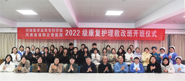 他講到,去年我們?cè)诳偨Y(jié)護(hù)理康復(fù)人才訂單培養(yǎng)經(jīng)驗(yàn)的基礎(chǔ)上,啟動(dòng)實(shí)施現(xiàn)代學(xué)徒制人才培養(yǎng)模式,全面落實(shí)“雙元”育人,著力培養(yǎng)學(xué)生的職業(yè)精神、專業(yè)技能、創(chuàng)新創(chuàng)業(yè)能力,促進(jìn)學(xué)生全面發(fā)展,進(jìn)一步提升了產(chǎn)教深度融合的育人格局。他建議,校院雙方聯(lián)合成立試點(diǎn)班教師教學(xué)創(chuàng)新團(tuán)隊(duì),總結(jié)16年來(lái)聯(lián)合開展護(hù)理康復(fù)人才培養(yǎng)經(jīng)驗(yàn),探討中醫(yī)適宜技術(shù)賦能護(hù)理人才培養(yǎng)的路徑和方案,推動(dòng)護(hù)理康復(fù)人才向養(yǎng)老產(chǎn)業(yè)轉(zhuǎn)型發(fā)展。他希望試點(diǎn)班的全體學(xué)員,一是要用心體會(huì)。學(xué)校和醫(yī)院為了同學(xué)們的成長(zhǎng)成才,投入了大量的人力和物力,同學(xué)們要用心體會(huì)學(xué)校和醫(yī)院的良苦用心,從思想上重視,倍加珍惜來(lái)之不易的學(xué)習(xí)提升機(jī)會(huì),努力完成各項(xiàng)學(xué)習(xí)任務(wù)。二是要用心感受。洛陽(yáng)正骨醫(yī)院始于平樂郭氏正骨的“洛陽(yáng)正骨”,創(chuàng)立于清朝乾隆年間,距今已有220多年歷史。河南省洛陽(yáng)正骨醫(yī)院用220多年的文化脈絡(luò)傳承、56年的現(xiàn)代化中醫(yī)專科醫(yī)院建設(shè),打造出“洛陽(yáng)正骨”品牌,請(qǐng)同學(xué)們?cè)跇I(yè)余時(shí)間學(xué)習(xí)醫(yī)院發(fā)展歷史,感受洛陽(yáng)正骨文化,盡快融入環(huán)境,接受熏陶。三是要健康成長(zhǎng)。同學(xué)們要珍惜每一次聽課、見習(xí)的機(jī)會(huì),努力做到多思考、多提問、多學(xué)習(xí)、多實(shí)踐、多總結(jié),在實(shí)踐中培養(yǎng)自己的協(xié)作、溝通、創(chuàng)新能力,在知識(shí)和技能上全面提升,在心理上盡快成熟成長(zhǎng)。