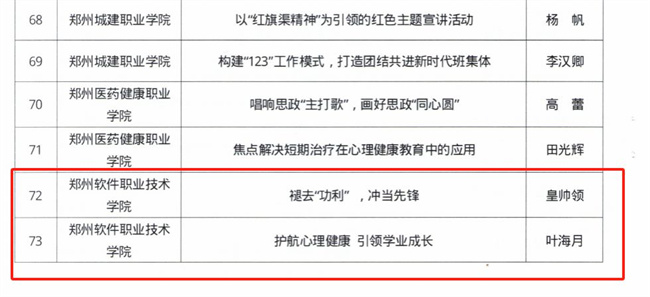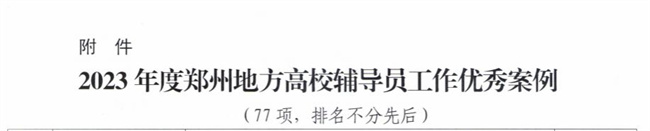 鄭州軟件職業(yè)技術(shù)學(xué)院在高校優(yōu)秀輔導(dǎo)員及輔導(dǎo)員工作優(yōu)秀案例評(píng)選活動(dòng)中獲佳績(jī)