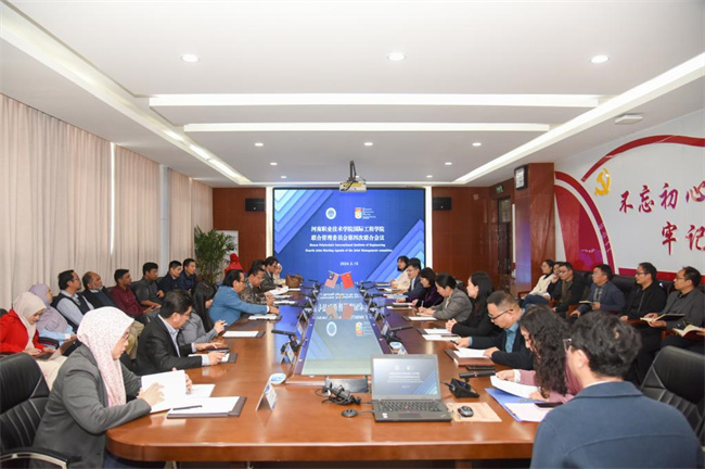 中新河南網(wǎng)3月17日電(師琳琳) 3月15日上午,馬來西亞國民大學(xué)國際教育部主任Dr. MUHAMMAD BIN HUSSIN一行8人到河南職業(yè)技術(shù)學(xué)院考察訪問,雙方組織召開國際工程學(xué)院聯(lián)合管理委員會第四次工作會議。校長夏新顏,校黨委副書記、紀委書記田華,副校長任楓軒出席會議。國際合作交流處、智能制造學(xué)院、電子與物聯(lián)網(wǎng)學(xué)院、現(xiàn)代信息技術(shù)學(xué)院相關(guān)人員及目前來校擔任教學(xué)任務(wù)的國民大學(xué)教師參會。會議由任楓軒主持。