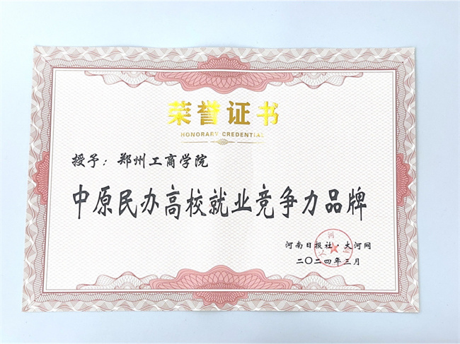 鄭州工商學(xué)院榮獲“中原民辦高校就業(yè)競爭力品牌”獎