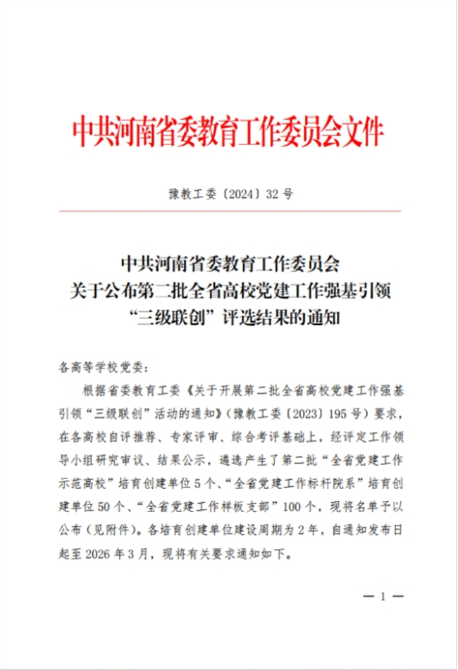 中新河南網(wǎng)3月20日電 近日,中共河南省委教育工作委員會下發(fā)了《關于公布第二批全省高校黨建工作強基引領“三級聯(lián)創(chuàng)”評選結果的通知》(〔2024〕32號),焦作大學土木建筑工程學院學生黨支部被評為“全省黨建工作樣板黨支部”。這是該校學生支部第一次獲得此項殊榮。