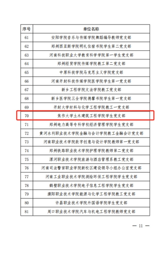 焦作大學土木建筑工程學院學生黨支部獲評第二批“全省黨建工作樣板支部”
