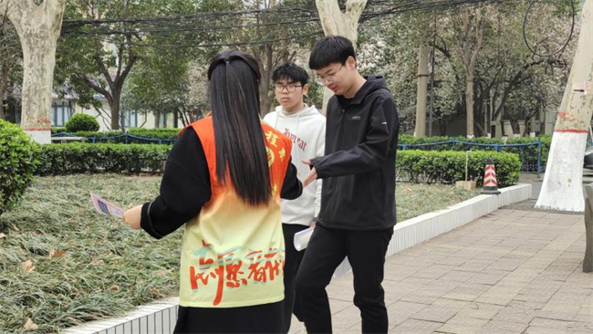 校園宣傳。開展保護水資源線上答題活動,通過知識競賽的形式,讓廣大學生了解、識記、拓寬水資源保護相關知識。在校園內懸掛宣傳橫幅、向師生分發(fā)水資源保護宣傳冊、設置簽名墻等,營造良好校園氛圍,吸引廣大師生關注參與中國水周宣傳主題活動。