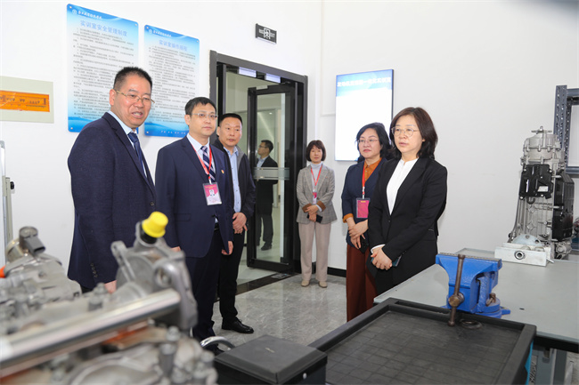 毛杰一行實(shí)地調(diào)研了鄭州職業(yè)技術(shù)學(xué)院汽車綜合實(shí)訓(xùn)中心、工業(yè)機(jī)器人工程技術(shù)中心、超硬材料及制品工程技術(shù)中心、華為ICT產(chǎn)教融合基地、虛擬現(xiàn)實(shí)工程技術(shù)中心、生命健康研究院等國家和省市實(shí)訓(xùn)科研平臺,聽取了學(xué)校在專業(yè)建設(shè)、實(shí)習(xí)實(shí)訓(xùn)、科教融匯、成果轉(zhuǎn)化和服務(wù)地方產(chǎn)業(yè)等方面的情況匯報(bào)。在虛擬現(xiàn)實(shí)工程技術(shù)中心,毛廳長現(xiàn)場體驗(yàn)了虛擬仿真實(shí)訓(xùn)系統(tǒng)。