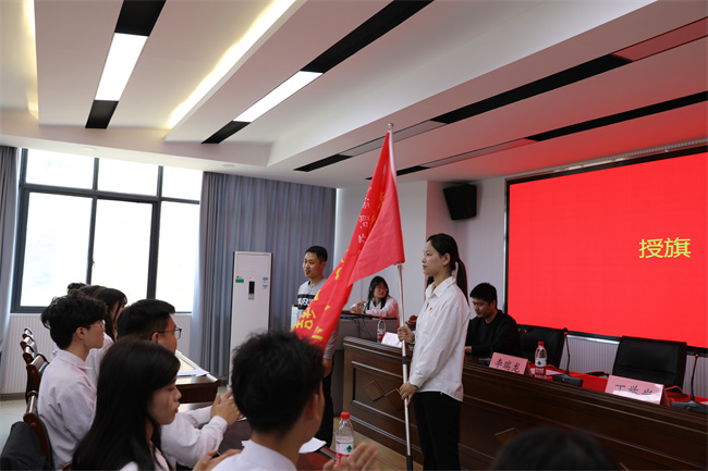 校團(tuán)委書(shū)記李瑞龍為“青馬工程”培養(yǎng)班授旗。