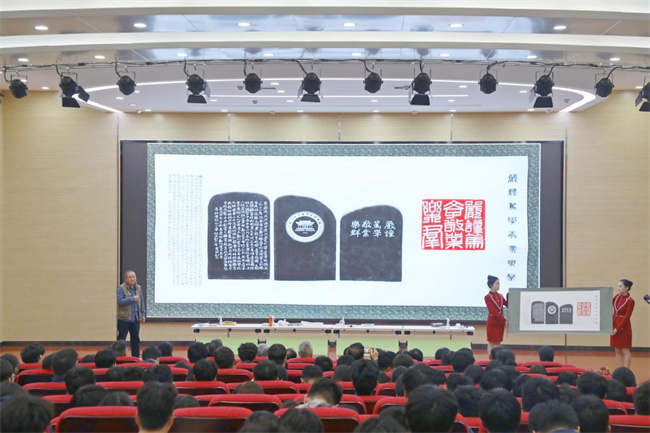 中國書協(xié)會(huì)員、河南省中國書畫家協(xié)會(huì)副主席韓湘人老師,以二十余年編著《王寵書法全集》(四卷本),向師生宣講《王寵暨王寵書法》。國家一級(jí)演員,河南省曲協(xié)副主席、曲藝牡丹獎(jiǎng)表演獎(jiǎng)獲得者王國軍老師為師生們表演了精彩的河南墜子藝術(shù)。中國書協(xié)會(huì)員、鄭州市金石文化研究會(huì)首任執(zhí)行會(huì)長王秋人老師帶來了《中國金石傳拓藝術(shù)欣賞》并現(xiàn)場演繹、教學(xué)。