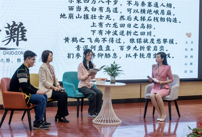 學(xué)校優(yōu)秀教師尹亞南、學(xué)生柳杏子、烏茲別克斯坦留學(xué)生阿里分別就《中華典籍里的優(yōu)秀傳統(tǒng)文化》分別進(jìn)入了誦讀和訪談。學(xué)生們展示了情景誦讀《少年中國說》,師生們激情澎湃的朗誦,贏得了現(xiàn)場觀眾們的陣陣掌聲。最后,河南省高校圖工委高職高專分委會(huì)副主任梁國華最后進(jìn)行了總結(jié)點(diǎn)評(píng)。