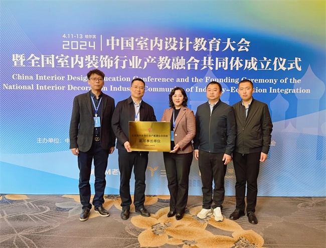 中新河南網(wǎng)4月13日電(王斌) 4月13日上午,全國室內(nèi)裝飾行業(yè)產(chǎn)教融合共同體成立大會在哈爾濱舉行。河南職業(yè)技術(shù)學院作為副理事長單位應(yīng)邀參會,校長夏新顏代表學校作了題為《“三對接三提升”,打造產(chǎn)教融合新范式》的職業(yè)教育先進經(jīng)驗分享,并受邀為理事單位授牌。黨政辦、教務(wù)處和數(shù)字創(chuàng)意與設(shè)計學院相關(guān)同志陪同。