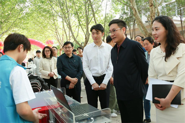 活動期間,校黨委書記厲勵,黨委副書記、紀(jì)委書記田華,副校長任楓軒與宣傳部、團(tuán)委、學(xué)工部、教務(wù)處、科技開發(fā)處、創(chuàng)業(yè)學(xué)院等部門負(fù)責(zé)人一起參加現(xiàn)場巡展,并在“我們的河職我代言,爭做文明河職人 ”簽名墻上簽下自己的姓名,倡議全體師生從我做起,從身邊做起,從點滴做起,爭做文明河職人,攜手共建文明校園。隨后,厲勵一行走到每個展臺前與參展同學(xué)進(jìn)行親切交流,他希望廣大團(tuán)員青年一要堅守愛黨初心,將個人的理想追求融入黨和人民的事業(yè)之中,感黨恩,聽黨話,跟黨走,切實擔(dān)負(fù)起黨和人民賦予的歷史重任,爭做有理想、敢擔(dān)當(dāng)、能吃苦、肯奮斗的時代新人;二要擦亮愛國主義鮮亮底色,將激昂的青春夢想融入偉大的中國夢中,將小我融入大我,以行動詮釋愛國之情,用青春書寫報國之志,爭做德技并修的能工巧匠、大國工匠;三要牢樹“愛校榮校,為校爭光”理念,增強(qiáng)主人翁意識,為學(xué)校建設(shè)發(fā)展建言獻(xiàn)策,貢獻(xiàn)智慧和力量,在創(chuàng)新創(chuàng)業(yè)中增長才干、銳意創(chuàng)新、敢試敢闖、不懼挑戰(zhàn),在“挑戰(zhàn)杯”的舞臺上展現(xiàn)青春風(fēng)采,爭做開拓新領(lǐng)域的先鋒,創(chuàng)造新業(yè)態(tài)的先鋒,探索新模式的先鋒,讓創(chuàng)新成為青春遠(yuǎn)航的動力,讓創(chuàng)業(yè)成為青春搏擊的能量,讓青春年華在為國家、為人民的奉獻(xiàn)中煥發(fā)出絢麗光彩。