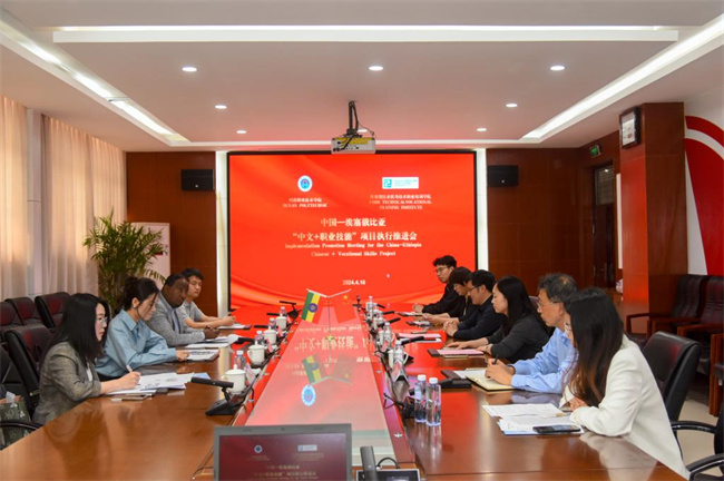 任楓軒代表學(xué)校向所羅門·梅孔嫩一行表示歡迎,并介紹了學(xué);厩闆r、辦學(xué)特色和國際合作交流情況,回顧了學(xué)校自2023年啟動(dòng)中埃“中文+職業(yè)技能”項(xiàng)目以來的工作進(jìn)展。他表示,中國-埃塞俄比亞“中文+職業(yè)技能”項(xiàng)目是對(duì)黨中央、國務(wù)院《關(guān)于深化現(xiàn)代職業(yè)教育體系建設(shè)改革的意見》的貫徹落實(shí),是培養(yǎng)國際化人才的堅(jiān)實(shí)舉措,學(xué)校高度重視與埃塞俄比亞的教育合作,愿意持續(xù)提供支持和幫助。
