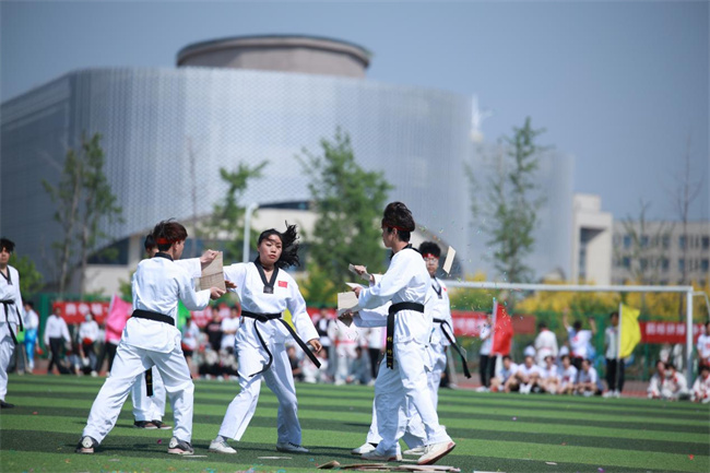 太極拳工作室和體育教學(xué)部帶來的武術(shù)節(jié)目《武韻雙馨》,憑借著精湛技巧和默契配合,展示了中國傳統(tǒng)武術(shù)的獨(dú)特魅力和水環(huán)學(xué)子的蓬勃朝氣。