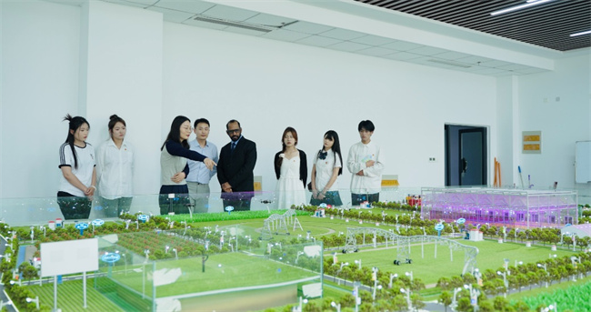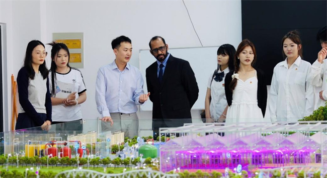 在河南水利與環(huán)境職業(yè)學(xué)院航空港校區(qū)德禮講堂,阿拉教授與水利工程系學(xué)生進(jìn)行了深入交流。他詳細(xì)詢(xún)問(wèn)了同學(xué)們的學(xué)習(xí)狀況,了解大家對(duì)于留學(xué)的意愿和期望,介紹了瑪莎大學(xué)的教育理念、課程設(shè)置和學(xué)術(shù)環(huán)境,參觀了水利工程系數(shù)字流域與水利樞紐動(dòng)態(tài)仿真實(shí)訓(xùn)平臺(tái)、VR虛擬仿真室、水利水電工程管理實(shí)訓(xùn)中心、水利水文實(shí)訓(xùn)中心等實(shí)訓(xùn)場(chǎng)所和平臺(tái)。