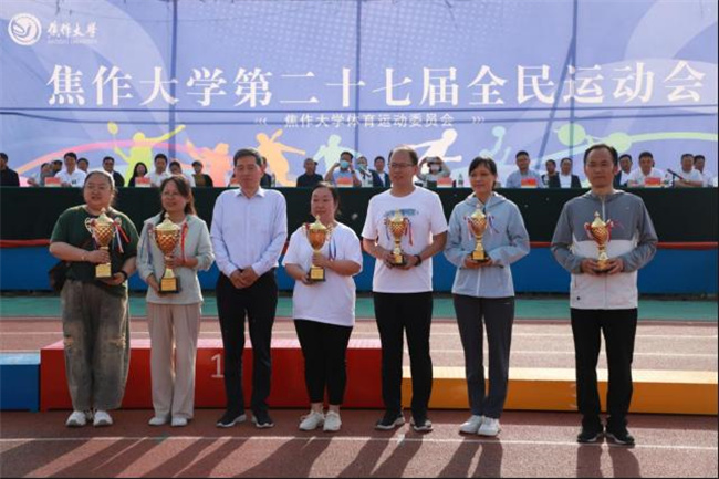 賽事為期兩天,來(lái)自各學(xué)院和機(jī)關(guān)各部門(mén)的1500余名師生報(bào)名參賽。賽場(chǎng)上,師生們充分發(fā)揚(yáng)“友誼第一,比賽第二”和“更高、更快、更強(qiáng)”的現(xiàn)代體育精神。經(jīng)過(guò)緊張激烈的角逐,最終經(jīng)管學(xué)院代表隊(duì)奪得教工集體項(xiàng)目第一名,教研規(guī)劃代表隊(duì)奪得教工團(tuán)體總分第一名,藝術(shù)學(xué)院代表隊(duì)同時(shí)奪得學(xué)生集體項(xiàng)目第一名和學(xué)生團(tuán)體總分第一名。此外,賽會(huì)還評(píng)出“體育道德風(fēng)尚獎(jiǎng)”、“優(yōu)秀組織獎(jiǎng)”和“特殊貢獻(xiàn)獎(jiǎng)”。(焦作大學(xué)供稿)