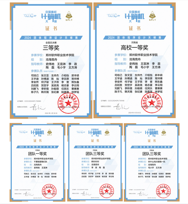 滄海競舟(高職高專組)河南省排名第一,榮獲河南省團(tuán)隊一等獎