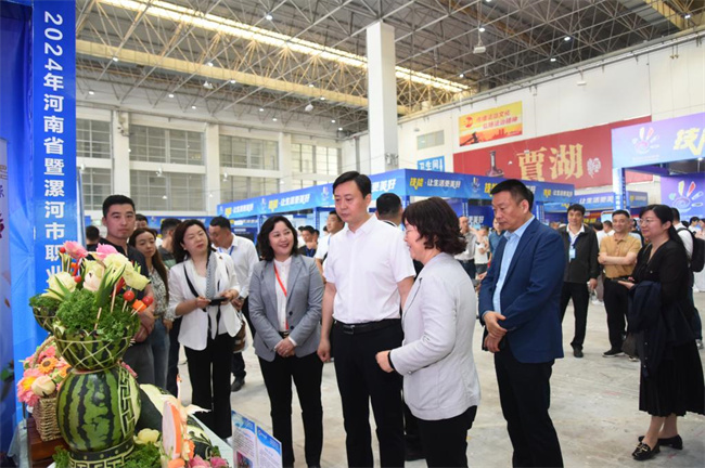 中新河南網5月10日電(焦晨瑩) 5月8日上午,2024年河南省暨漯河市職業(yè)教育活動周啟動儀式在漯河市舉行。民革省委會主委、河南省中華職教社主任、河南省糧食和物資儲備局局長張弓,河南省教育廳黨組成員、副廳長張國強等領導出席啟動儀式。來自全省各地職業(yè)院校、省轄市教育局、知名企業(yè)等59家單位,800余人參加啟動儀式。河南職業(yè)技術學院作為國家“雙高計劃”建設單位代表應邀參展,校長夏新顏、副校長肖瓏帶領發(fā)展規(guī)劃處以及相關學院師生參加啟動儀式。