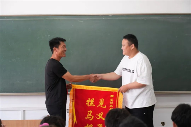 5月10日,為不耽誤馬賢輝的課程,在土木與交通工程學(xué)院安排下,劉先生利用課間給馬賢輝送去“攔馬報(bào)警 見義勇為”的錦旗。
