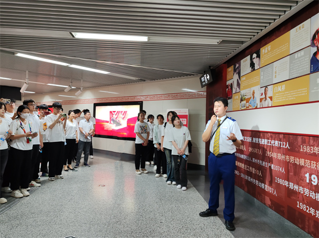 鄭州勞模精神主題車站是鄭州地鐵集團(tuán)傾心打造的一座以弘揚“勞模精神、勞動精神、工匠精神”為主題的車站。車站主題分為三部分,分別是“點亮勞動之光”“禮贊勞動之美”“唱響勞動之歌”。“點亮勞動之光”以工匠紅為主色彩,以城市勞動者的背影與工匠精神內(nèi)涵相呼應(yīng);“禮贊勞動之美” 以“匠”字為設(shè)計元素,設(shè)計了勞動模范人物代表展示區(qū)、參觀拍照打卡區(qū)、榮譽展示區(qū),讓乘客在跨越時空的互動中更加深刻地感受三種精神,鼓勵更多人通過辛勤勞動實現(xiàn)人生夢想,創(chuàng)造美好未來;“唱響勞動之歌”以“五一之路”為主要內(nèi)容,展示了河南工人運動不同時期的發(fā)展歷程。