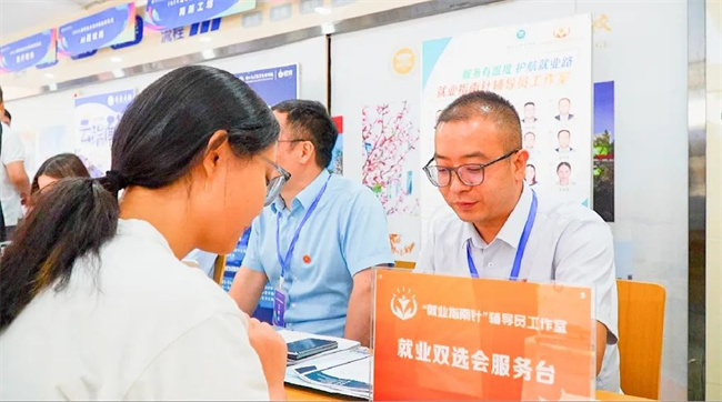 各學(xué)院領(lǐng)導(dǎo)班子、專業(yè)建設(shè)負(fù)責(zé)人和畢業(yè)生輔導(dǎo)員也來到招聘會(huì)現(xiàn)場(chǎng),零距離、面對(duì)面了解企業(yè)人才需求,為學(xué)生應(yīng)聘提供指導(dǎo)幫助,促進(jìn)供需雙方精準(zhǔn)有效對(duì)接。雙選會(huì)還設(shè)置了"就業(yè)指南針""生涯規(guī)劃""簡(jiǎn)歷工坊""AI面試間""留學(xué)生面對(duì)面"等就業(yè)指導(dǎo)服務(wù)專區(qū)和應(yīng)征入伍宣傳區(qū),為學(xué)生提供簡(jiǎn)歷修改、就業(yè)政策指導(dǎo)、職業(yè)規(guī)劃、就業(yè)心理輔導(dǎo)和應(yīng)征入伍政策解讀等等全流程、全方位的就業(yè)服務(wù)。
