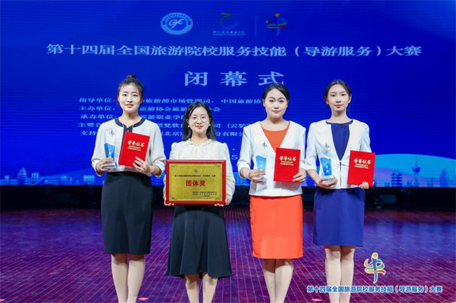 中新河南網(wǎng)5月28日電(魏金嬋) 5月24日至26日,第十四屆全國(guó)旅游院校服務(wù)技能(導(dǎo)游服務(wù))大賽在鄭州舉行。河南職業(yè)技術(shù)學(xué)院文化旅游學(xué)院學(xué)生崔燦燦和周雅琪雙雙獲普通話導(dǎo)游服務(wù)賽項(xiàng)一等獎(jiǎng),薛晶晶和郭閃閃分獲英語(yǔ)導(dǎo)游服務(wù)賽項(xiàng)一等獎(jiǎng)和二等獎(jiǎng);學(xué)?偝煽(jī)位居高等院校組(含本專(zhuān)科)第5位,獲大賽團(tuán)體獎(jiǎng),這也刷新了學(xué)校歷屆比賽最好成績(jī),實(shí)現(xiàn)新突破。