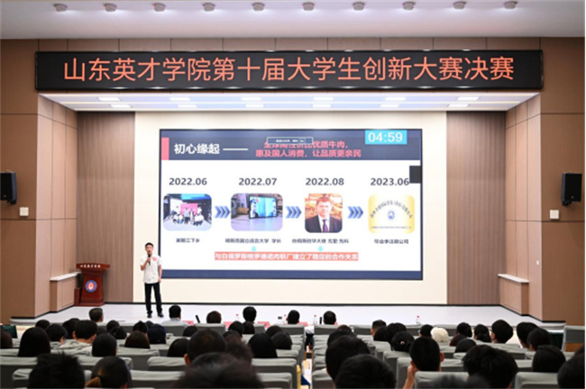 決賽開始前,崔奎勇上臺致辭,崔奎勇對入圍決賽的團隊表示熱烈祝賀,對為本次大賽辛勤付出的指導(dǎo)教師、學生團隊、工作人員表示感謝。他強調(diào),今年4月份學校出臺了《山東英才學院關(guān)于加強學生創(chuàng)新創(chuàng)業(yè)素養(yǎng)培育的實施意見》,希望通過校院兩級的通力配合加強學生創(chuàng)新創(chuàng)業(yè)素養(yǎng)的培育。全校上下要落實立德樹人根本任務(wù),傳承和弘揚紅色基因,深化“五育”與創(chuàng)新創(chuàng)業(yè)教育融合,開啟創(chuàng)新創(chuàng)業(yè)教育改革新征程,激發(fā)青年學生創(chuàng)新創(chuàng)造熱情,打造共建共享、融通中外的國際創(chuàng)新創(chuàng)業(yè)盛會,讓青春在全面建設(shè)社會主義現(xiàn)代化國家的火熱實踐中綻放絢麗之花。